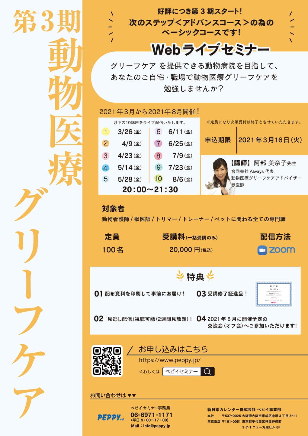 日ごろから実践できるグリーフケアから、ターミナル、ペットロスまでの全般をお伝えする内容です。