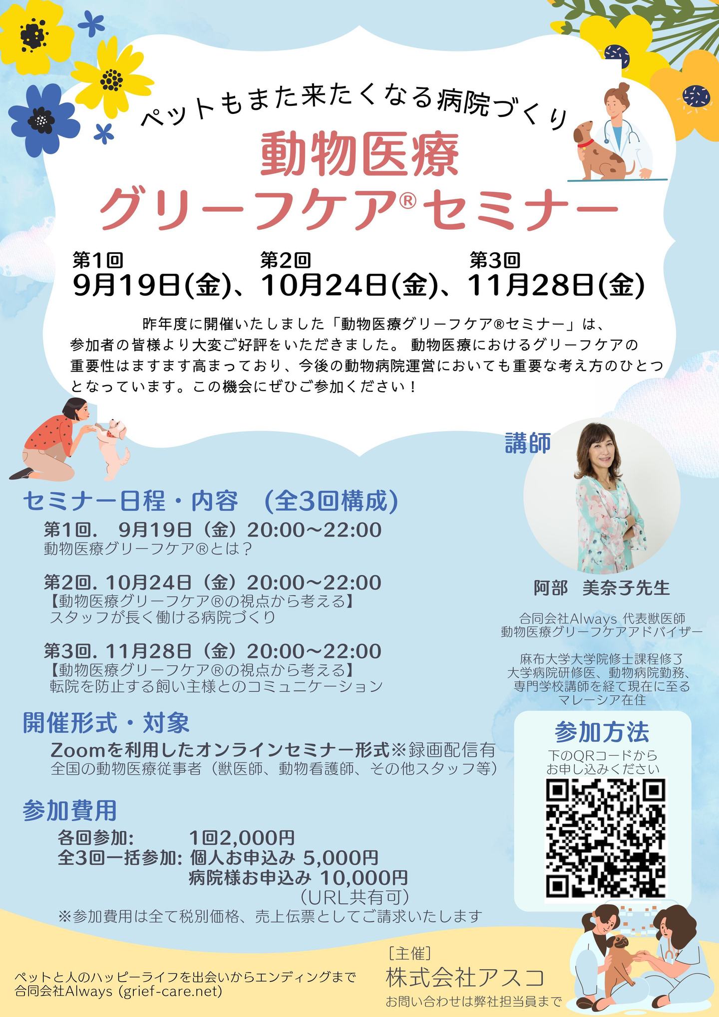 動物病院および企業対象動物医療グリーフケアセミナー(全3回)