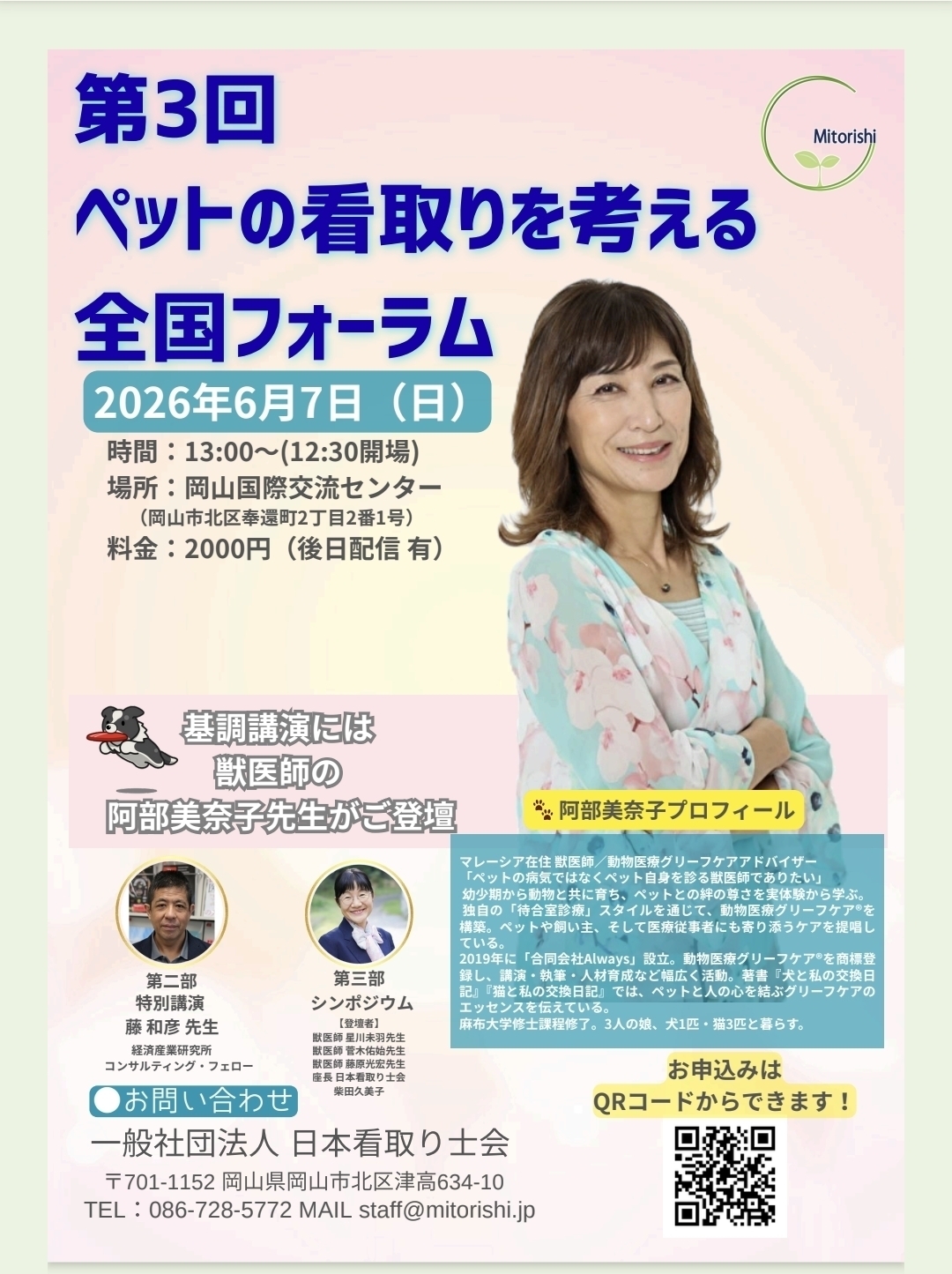 阿部美奈子先生も登壇し、ペットを幸せに守るためには重要な動物医療でのグリーフケアをお伝えします。