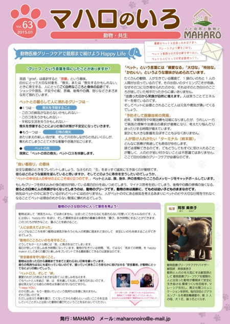 新年まず第一弾は「動物医療グリーフケアで最期まで続けようHappy Life」が掲載。