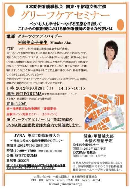 <日本動物看護職協会 関東甲信越支部主催 グリーフ ケア セミナー>