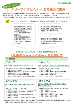 | アニコムパフェ主催動物医療グリーフケアセミナー<グリーフケア各論①~④> | 会場 高田馬場 アリミノビル 時間 19時〜21時30分 2月29日 グリーフケアコミュニケーションン 4月11日 ターミナルケア 5月23日 グリーフケア導入インフォームドコンセント 6月20日 死別のグリーフケア |