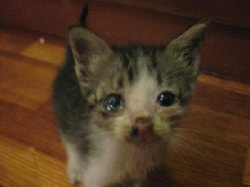 そこにはティッシュの空き箱の横にちょこんと座るkitten(=子猫)。