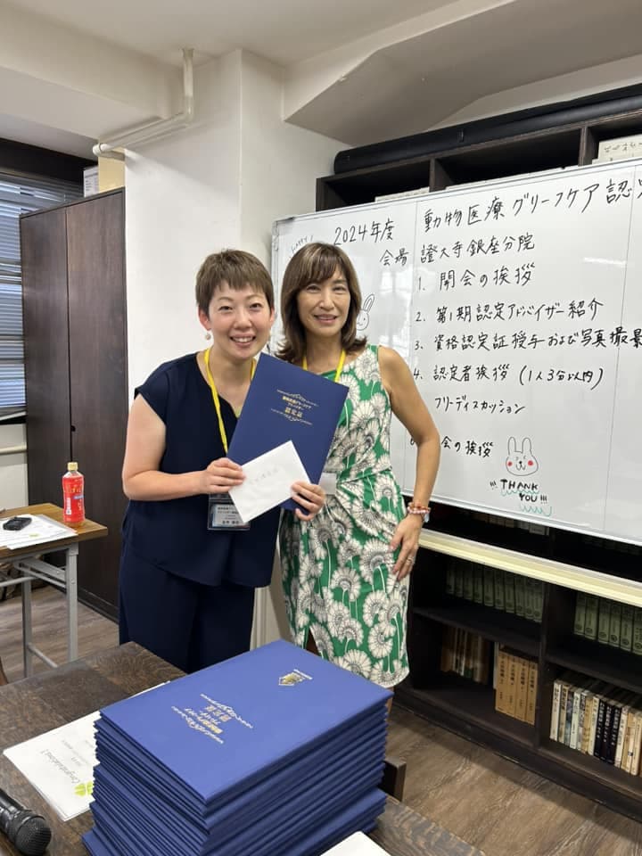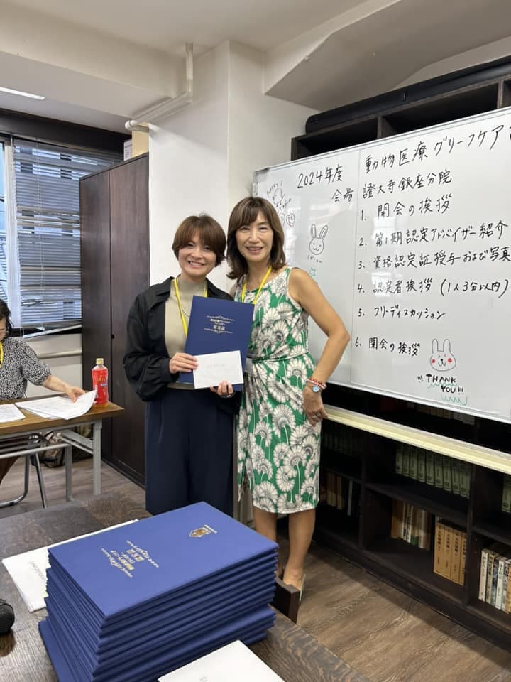動物医療グリーフケアを後継していく人材に一人一人認定証を授与していく時間は、私の人生で最高にうれしい瞬間。