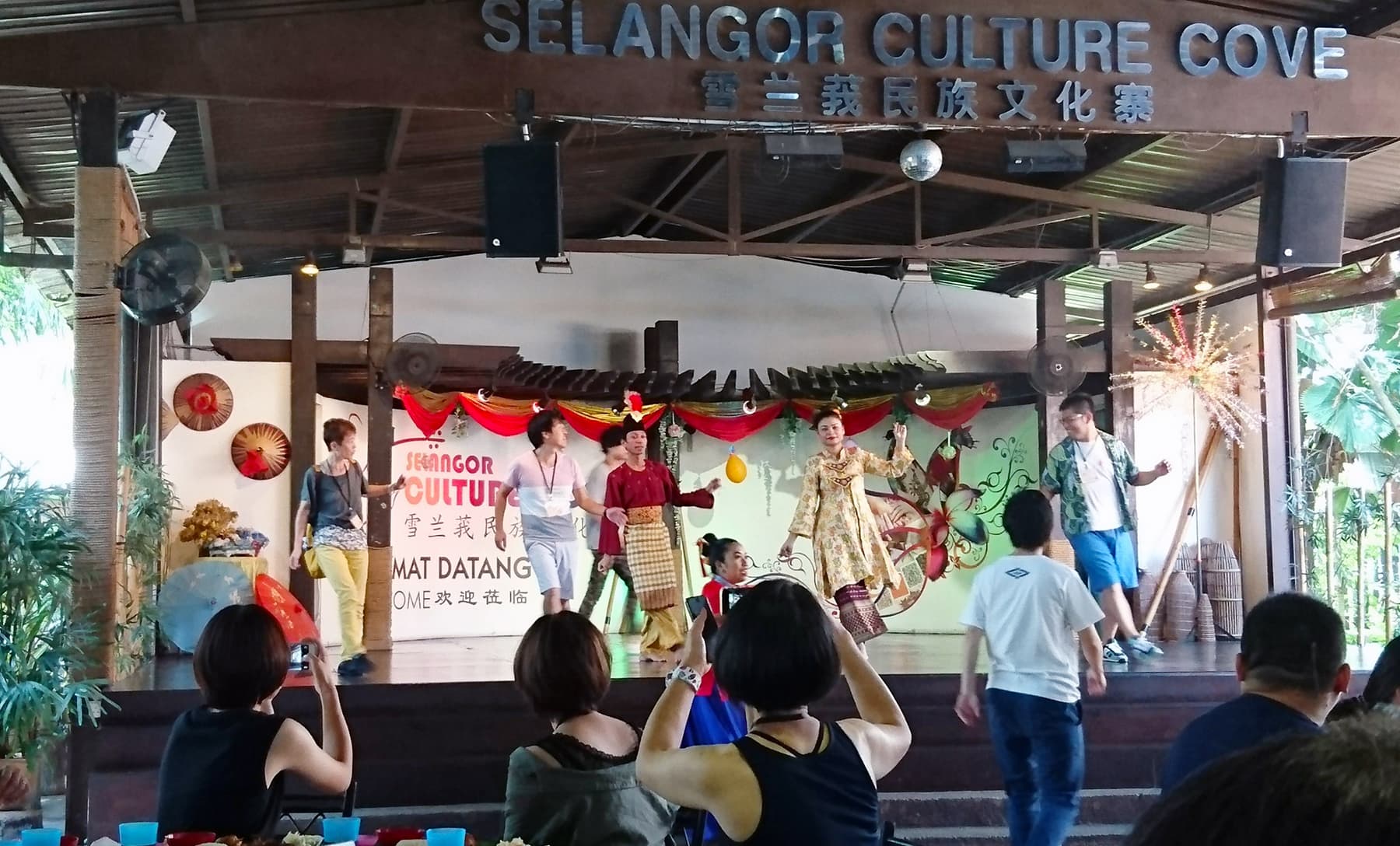 マレー系、中華系、インド系が織り交ざった伝統的なダンスを見ながらマレー料理ナシレマを楽しむ時間。
