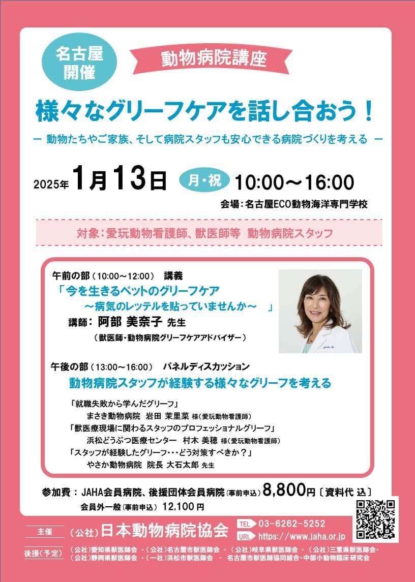 今回のセミナーでは動物医療グリーフケアを解説し正しい理解を広げます。また、動物病院から3症例発表、プロフェッショナルグリーフに対するグリーフケアを解説します。