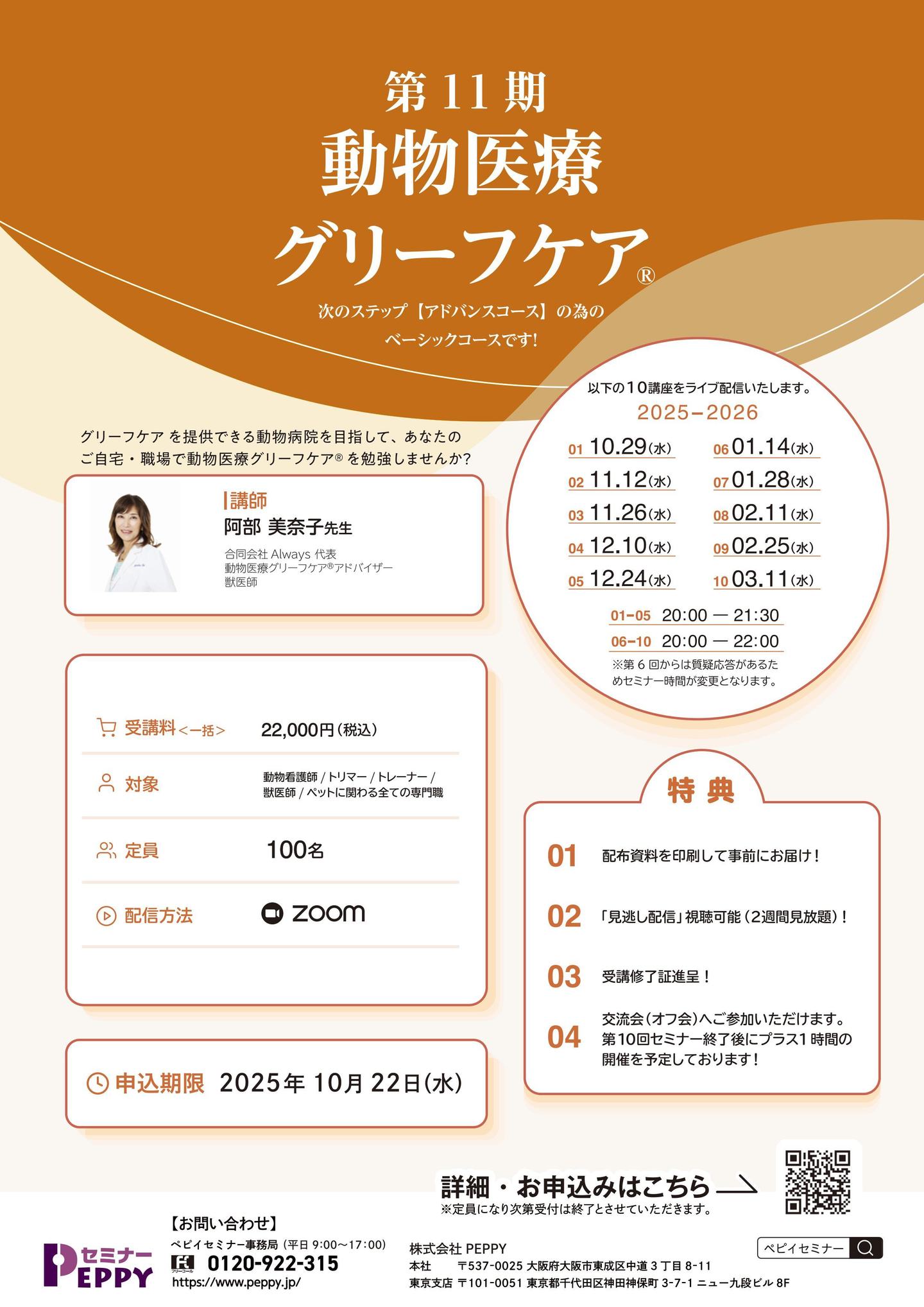 動物病院および企業対象動物医療グリーフケアセミナー(全3回)