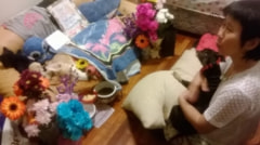 ごはんあげたり、おやつあげたり、一緒にカステラ食べたり、