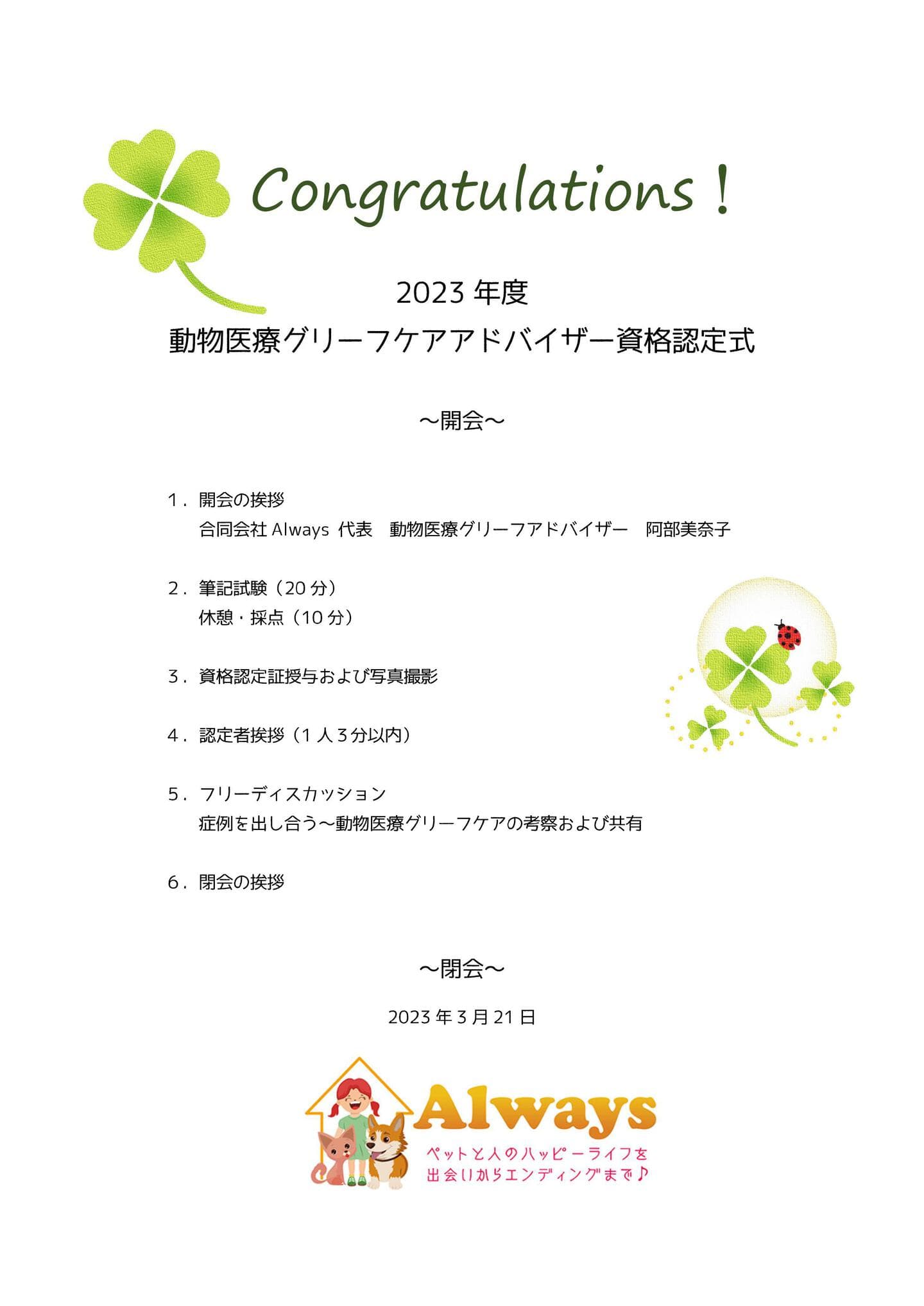 動物医療グリーフケアアドバイザー認定式を開催いたしました!