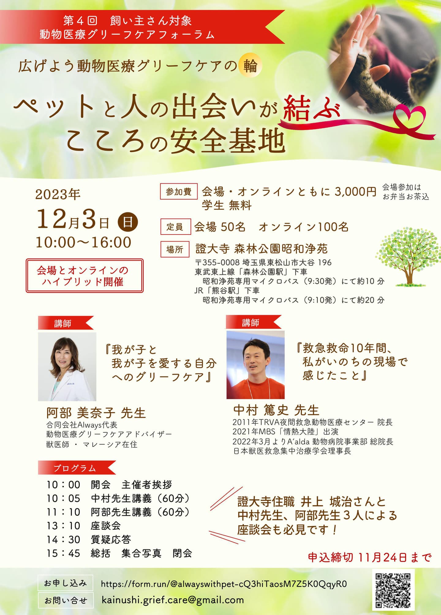 フォーラムを機にお寺での動物医療グリーフケアの普及に尽力していきたいと思います。